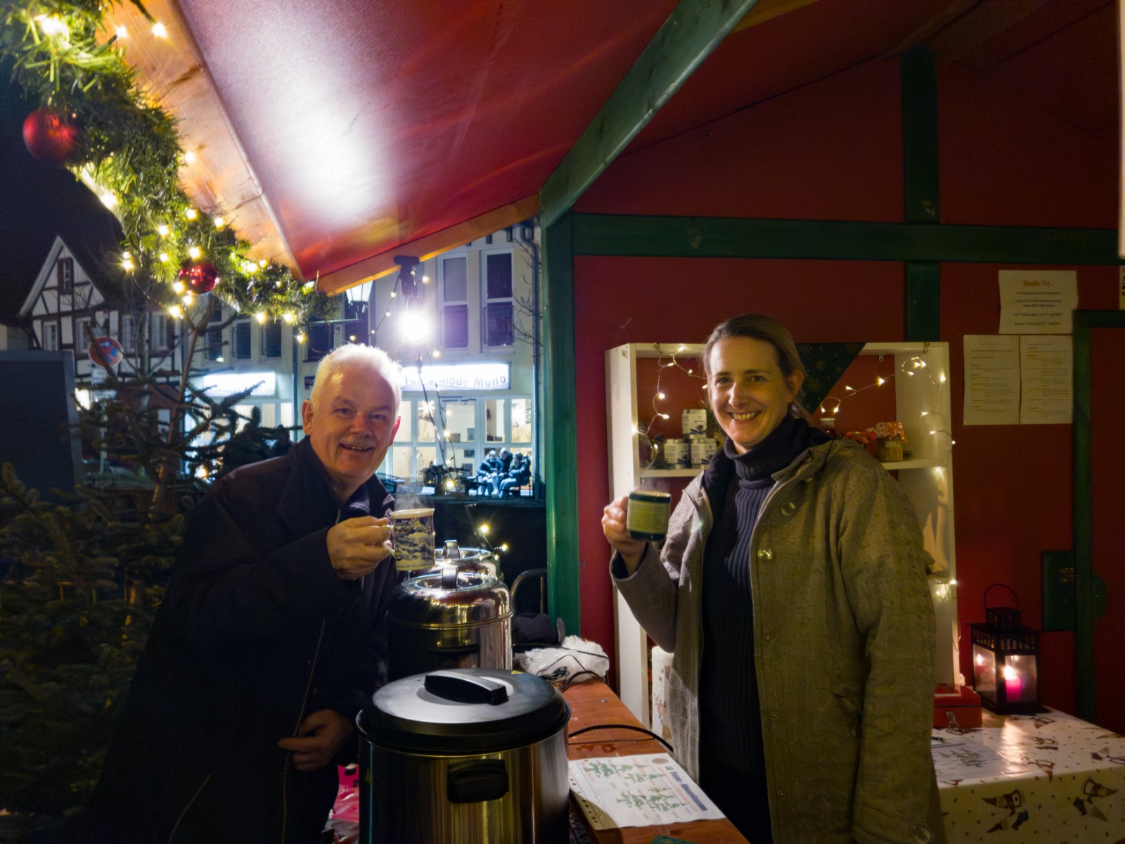 An den zwei Tagen gingen fast 1100 Becher Glühwein über den Tresen und in die Kehlen. Hinzu kamen etwa 250 Becher heißer Apfelsaft und Kakao. Und natürlich wurde im Vorfeld wieder gebacken und eingekocht, sodass 22 kg Plätzchen und mehr als 50 Gläser Marmeladen und Holundersirup verkauft werden konnten. Und nicht zu vergessen: zwischendurch wurde reichlich gespült und abgetrocknet und so für ständigen Nachschub gesorgt.