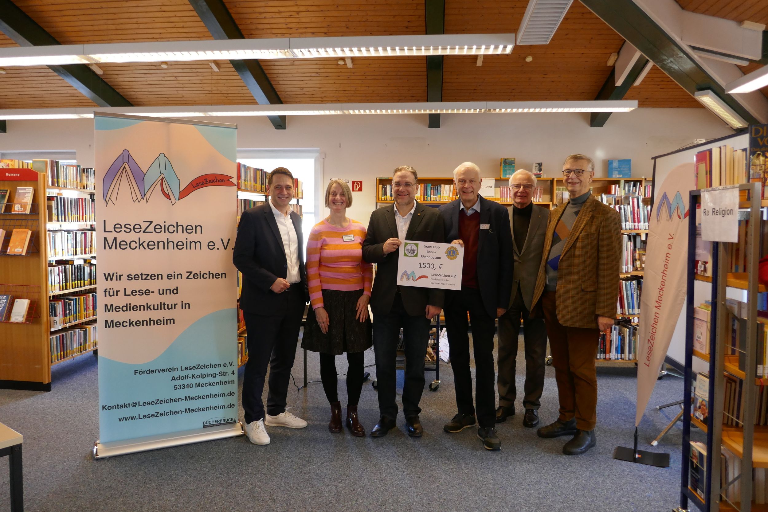 Christian Dürig, erster Vorsitzender des Fördervereins LeseZeichen e.V., bedankte sich für die erneute Unterstützung: „Die wiederholte Förderung durch den Lions-Club zeigt das große Vertrauen in unsere Arbeit und in die Bücherbrücke Meckenheim. Mit seinem Engagement setzt der Lions-Club Bonn-Rhenobacum seinen Einsatz für pädagogische und soziale Projekte konsequent fort.“